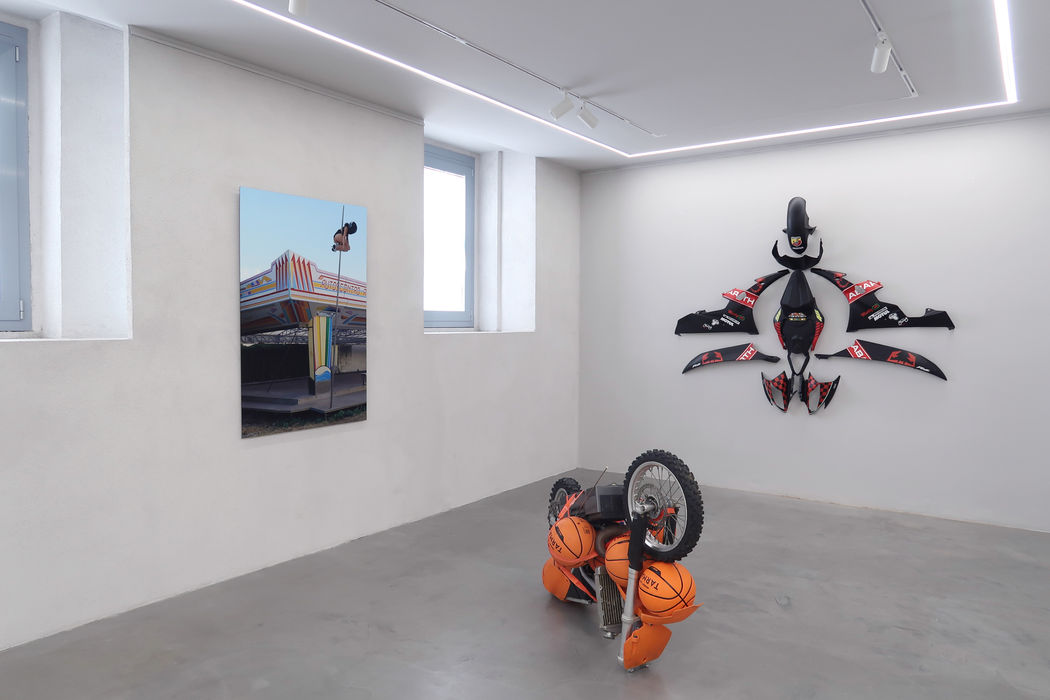 Likewise, the photographs: entering the gallery along with their full iconographic scope. Here, basketball and sports-related symbologies (the Swoosh in GT3 Shox Tailwind, basket-balls in Cheval Balenciaga) coexist without overpowering the elegant aesthetics of luxury brand advertisements. Just do it is also the idea behind sharing this kind of work in a gallery: to violate the ecclesiastical aura and bring into the temple a culture that does not get the representation it deserves. There are masses of people who share the same language, but whose voice has no echo, cannot be heard, especially in an art gallery or museum.