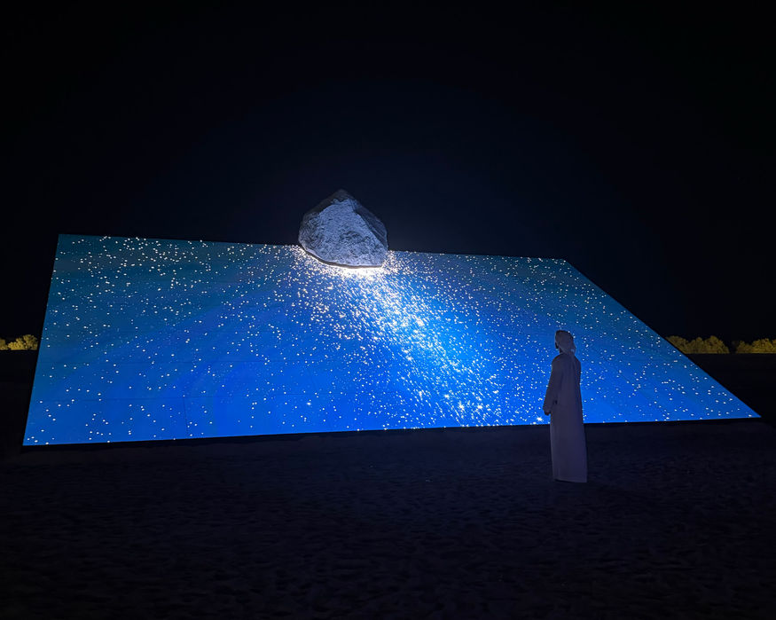 In this sense, Skyward transforms observation into a spiritual act. Not the act of looking at something, but of being looked at by the universe. Unlike many works that celebrate technological mastery, Skyward reclaims technology as a tool for contemplation rather than domination. It uses digital precision to speak the language of silence. It does not overwhelm; it whispers. The mirror, a recurring symbol of illusion and vanity, here becomes sacred, not an interface that separates, but one that connects. It reflects not our image, but our longing to belong to something larger, eternal, immeasurable. In the context of Manar Abu Dhabi, Skyward resonates as a monument to human aspiration, a work that reminds us that progress is not merely vertical, but introspective. To rise is also to return; to ascend is to remember where we come from.